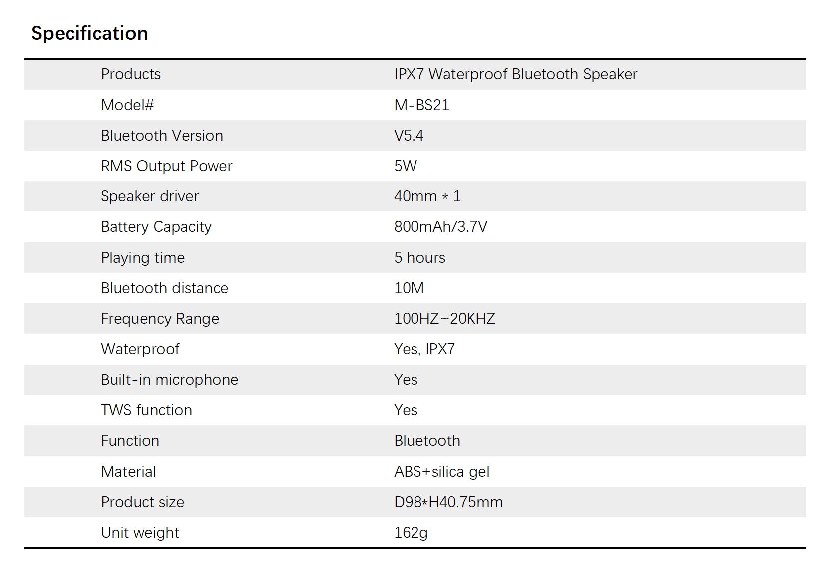 M-BS21 IPX7 Waterproof Bluetooth Speaker
