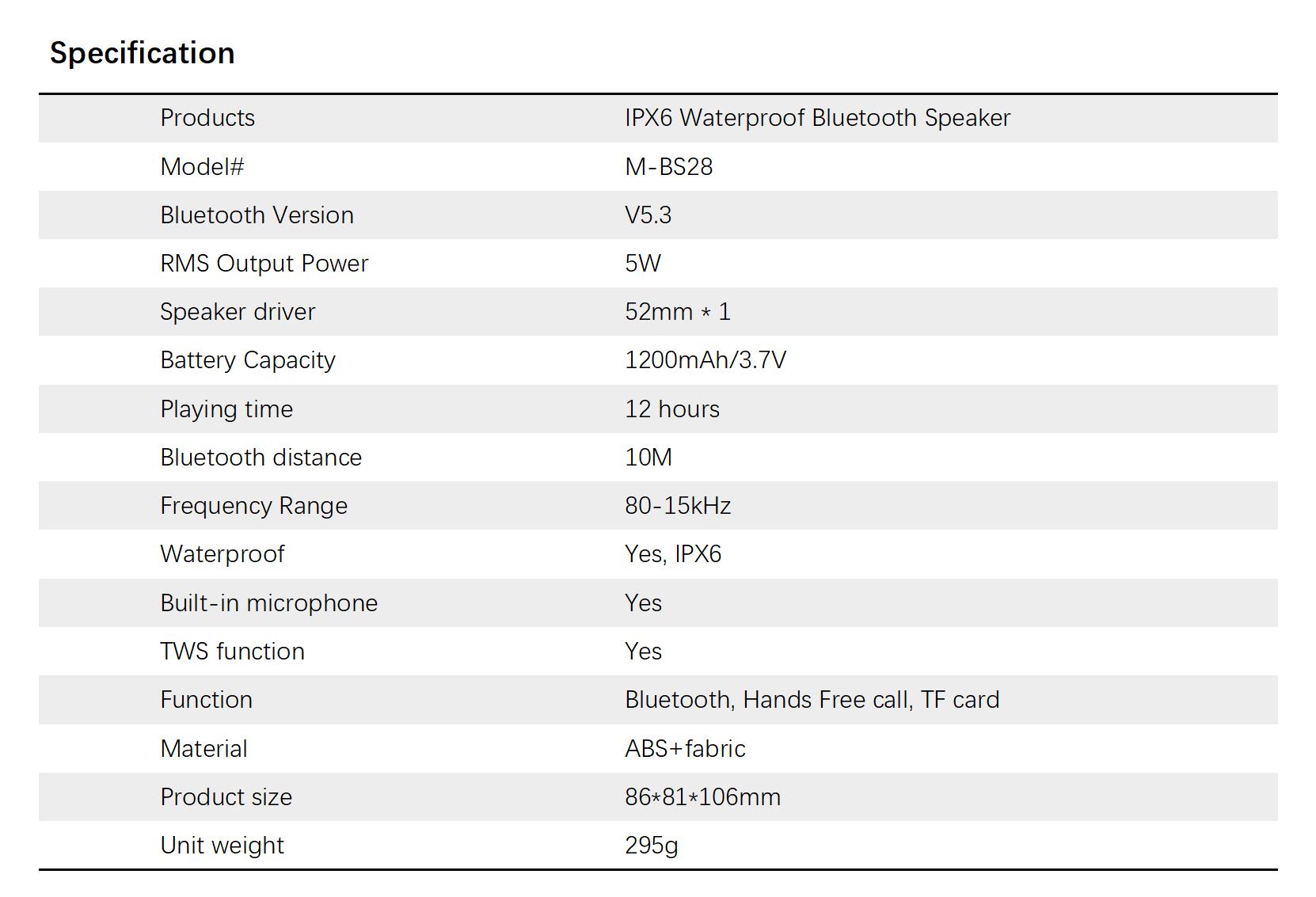 M-BS28 IPX6 Waterproof Portable Bluetooth Speaker