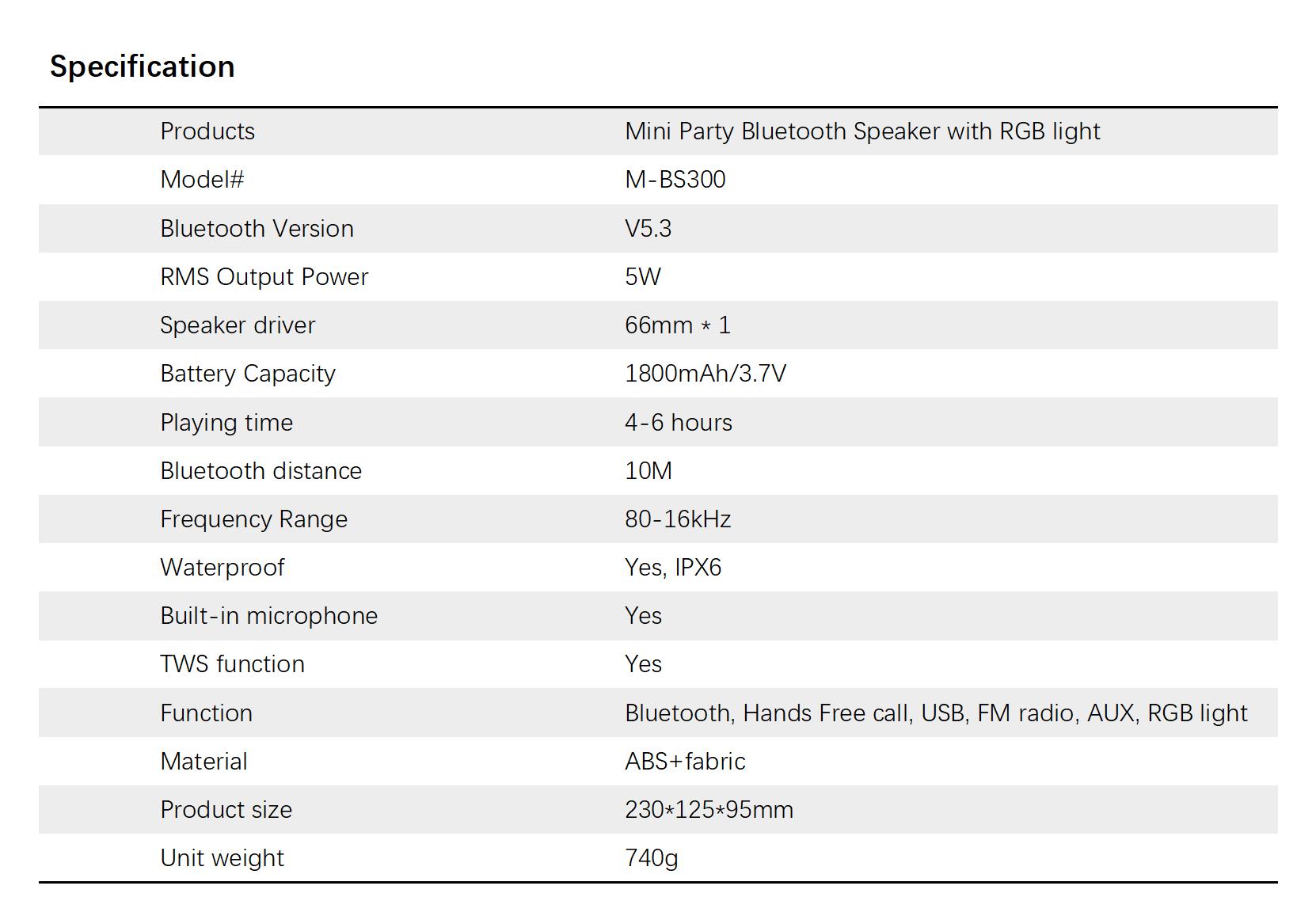 M-BS300 Mini Party Bluetooth Speaker with RGB light