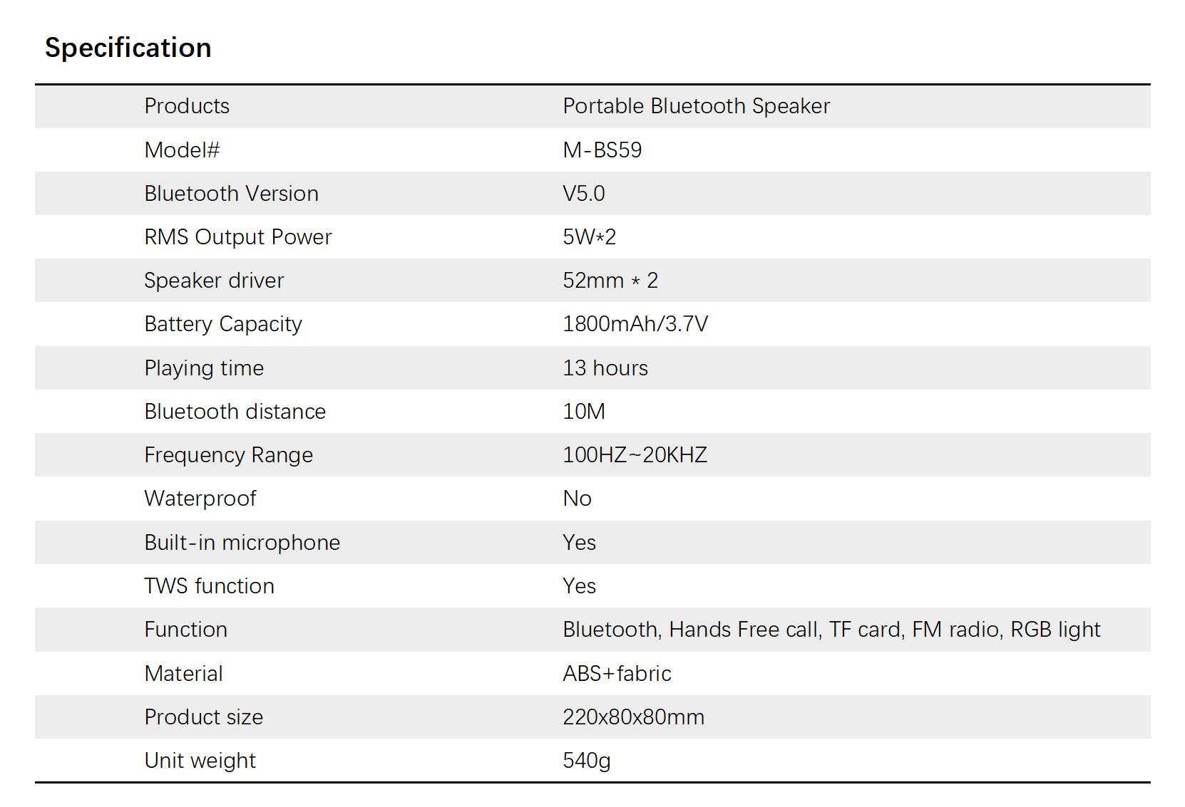 - • TWS function support pairing up to 2 Speakers to expand your listening experience