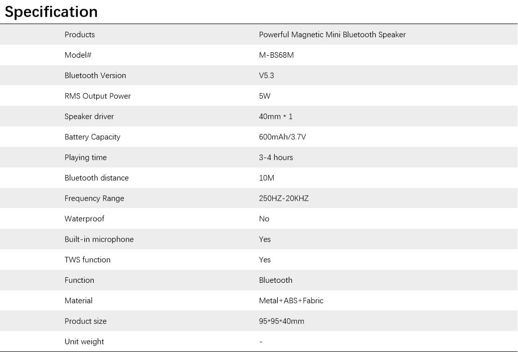 M-BS68M Powerful Magnetic Mini Bluetooth Speaker
