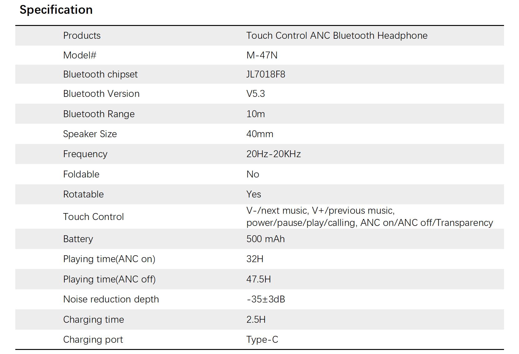 M-BT47N Touch Control Hybrid ANC Bluetooth Headset
