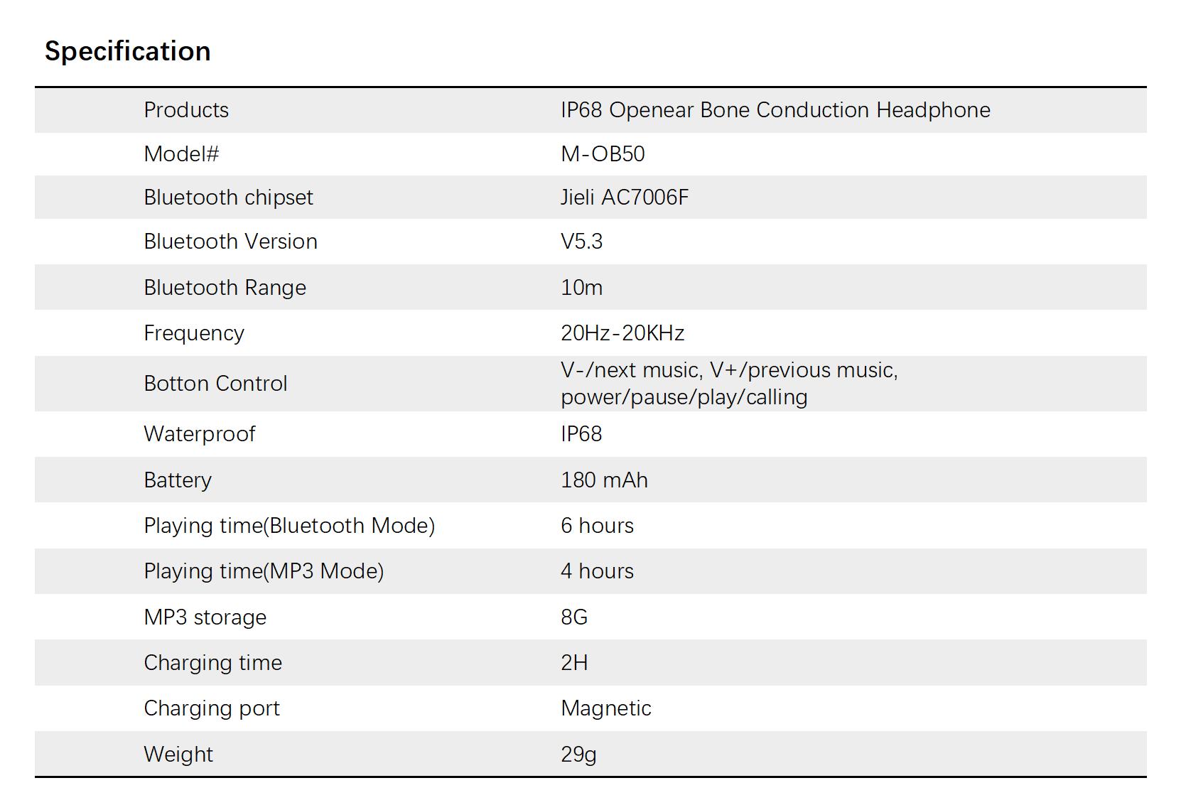 M-OB50 IP68 Openear Bone Conduction Earbuds