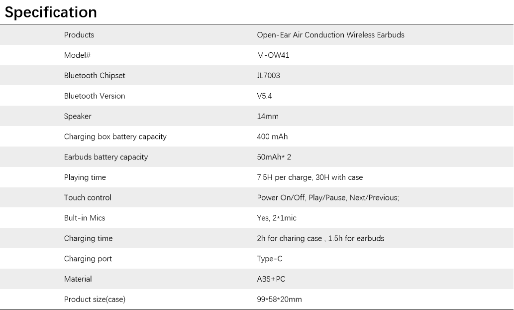 M-OW41 Open-Ear Air Conduction Wireless Earbuds